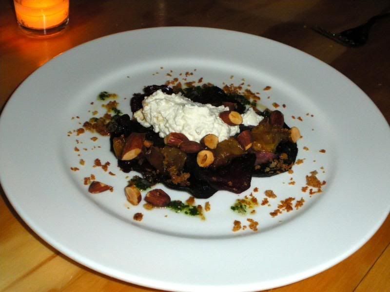 We started off with the Duck Fat Beets with fresh cow's milk cheese, almond, and whole wheat bread crumbs, $9. We thought the portions were small but tasted fresh.